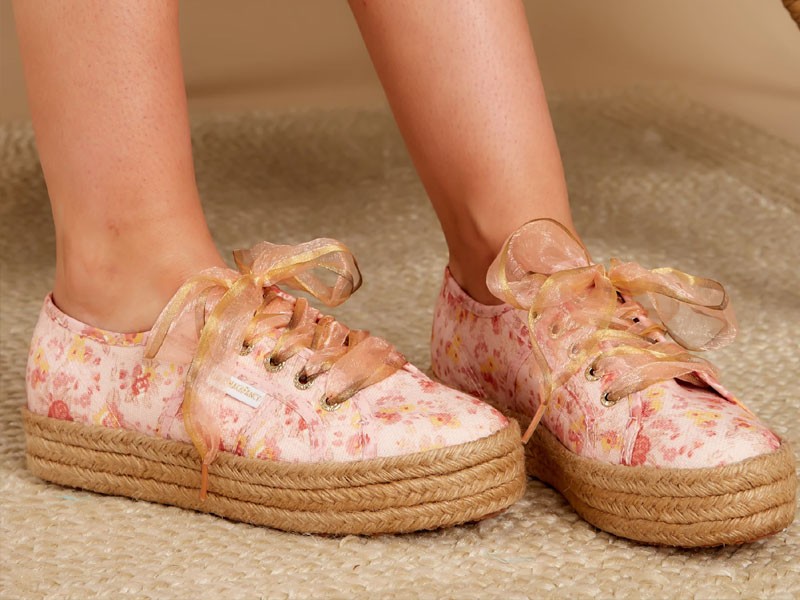 2730 Fan Cotropew Pink Floral Print Platform Sneakers For Women