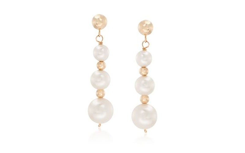 Ross-Simons is offering 30% off on 5-9mm Cultured Pearl Linear Drop Earrings in 14kt Yellow Gold and droped its price to $59.50 from $85.00.