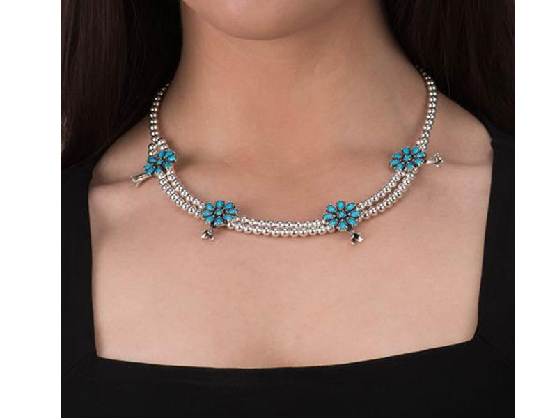 American West Jewelry Beauty Turquoise Squash Blossom Necklace For Women