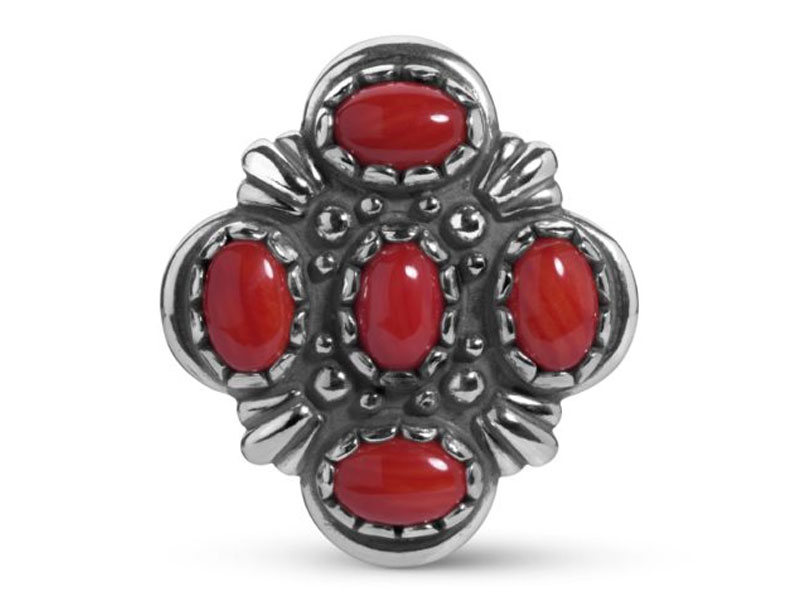 - Pendant features 5 Red Coral gemstone cabochons set in serrated bezel mountings.