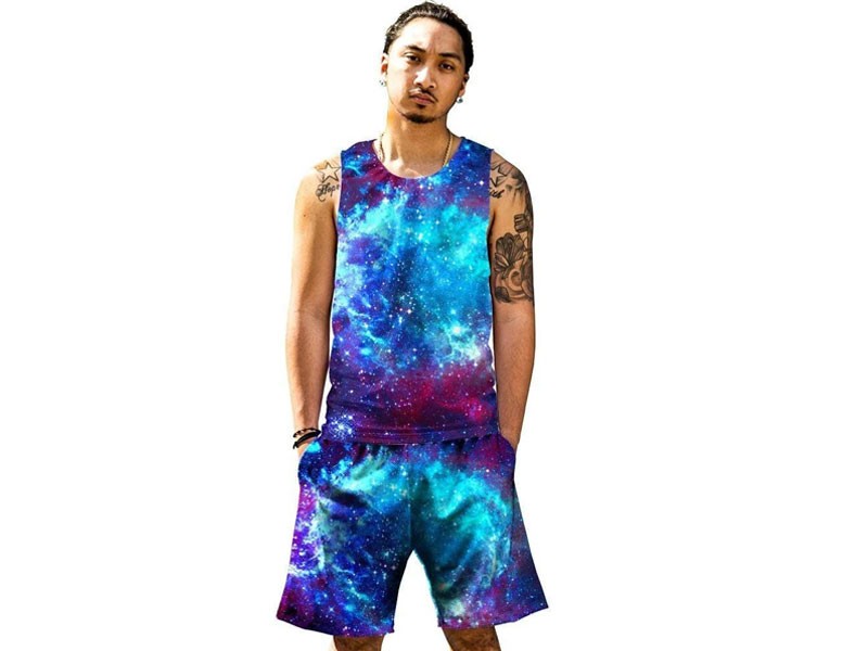 Blue Galaxy Tank and Shorts Rave Outfit For Men