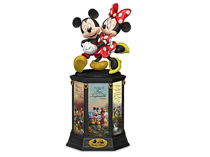 - Lights up! At the flip of a switch, this Mickey Mouse & Minnie Mouse sculpture illuminates from within, magnificently highlighting each colorful panel