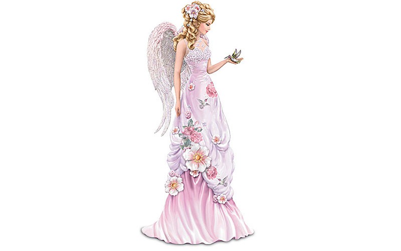 - As the perfect finishing touch, a fully sculpted hummingbird gently rests in the angel's outstretched hand