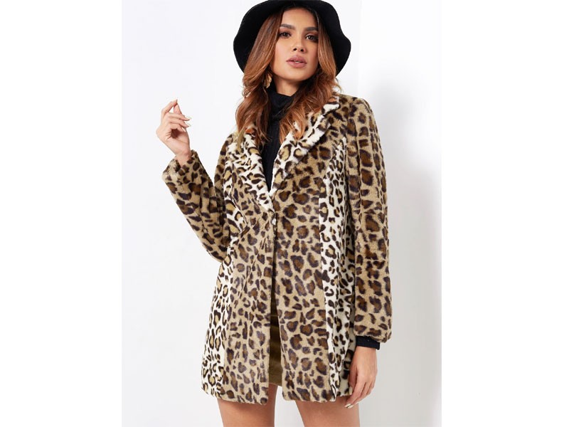 Yoins is offering 61% off on Leopard Print Lapel Collar Long Sleeved Fluffy Coat For Women and droped its price to $24.95 from $63.95.
