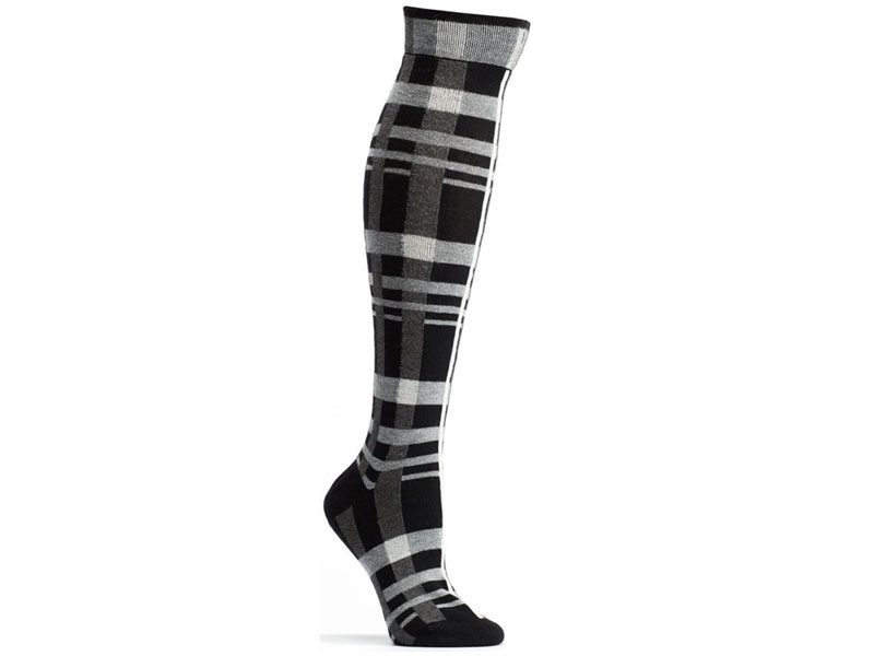 - Women's plaid knee high sock from Ozone Design. Made in Colombia, designed in NYC. Contents: 83% Cotton / 16% Nylon / 1% Spandex. Women's sock size 9-11 (shoe 5-10).