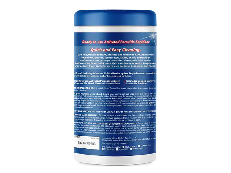 Sanidate Sanitizing Wipe 125 Wipes (2015-125)