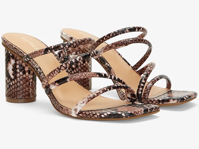 Express.com is offering 33% off on Snakeskin Textured Strappy Heeled Sandals For Women and droped its price to $39.99 from $59.90.