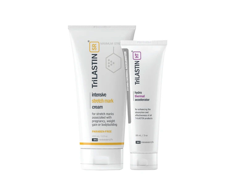 - 2 month supply: Includes (2) 5.5 oz bottles of TriLASTIN Maximum Strength Stretch Mark Cream and (1) 3oz bottle of TriLASTIN Hydro-Thermal Accelerator
