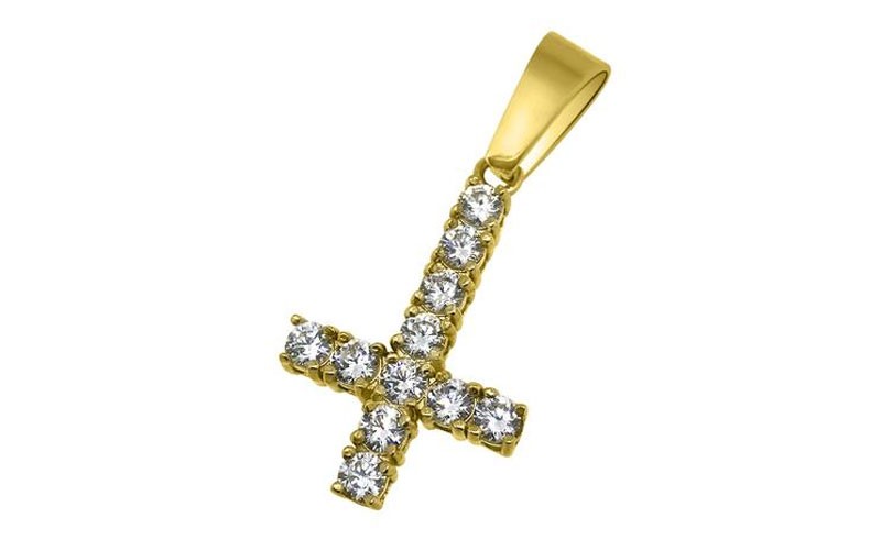 Hip Hop Bling is offering 75% off on Upside Down Cross 3Mm Cz Tennis Men Pendant Bling Gold Steel and droped its price to $25.95 from $105.00.