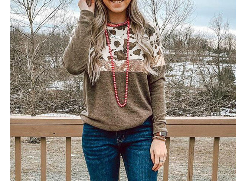 Bellelily is offering 15% off on Women's Cow Sequined Splicing Sweatshirt and droped its price to $28.89 from $33.99.