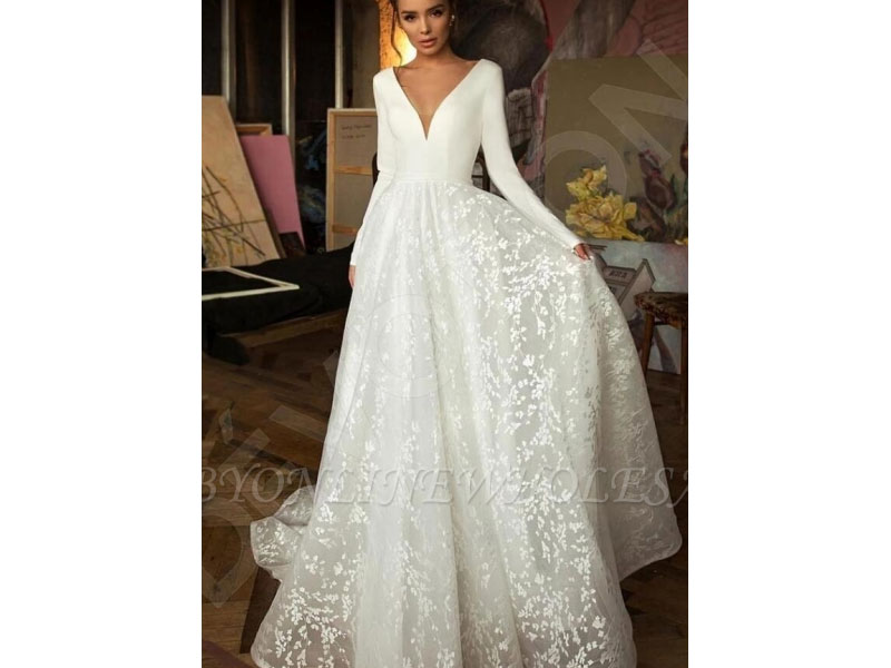 - product name: Elegant Lace Bridal A-line V-Neck Long Sleeves Wedding Dresses