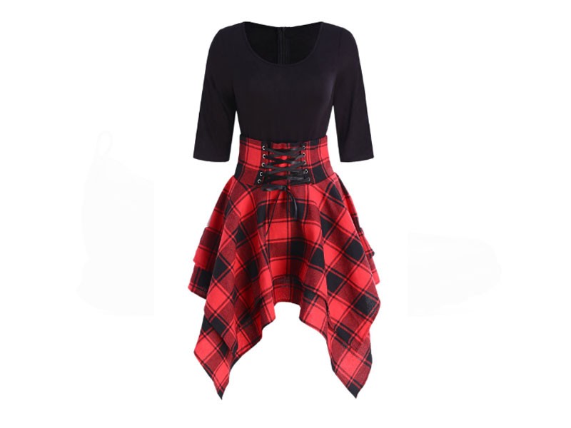 DressLily is offering 38% off on Women's Lace Up Plaid Asymmetrical Dress and droped its price to $29.99 from $46.78.