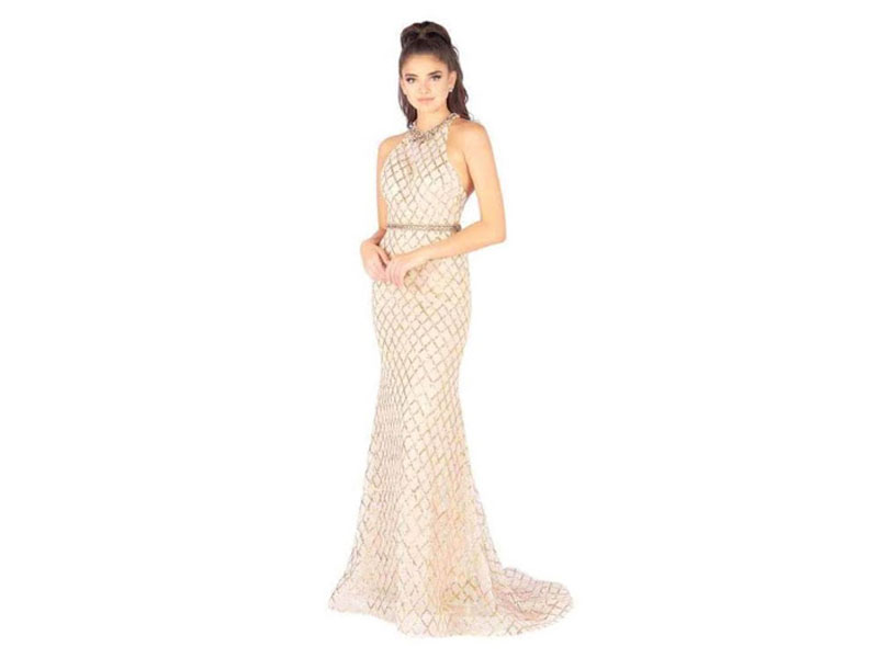 Couture Candy is offering 50% off on Women's Mac Duggal Flash Bedazzled Halter Trumpet Dress With Train and droped its price to $169.00 from $338.00.